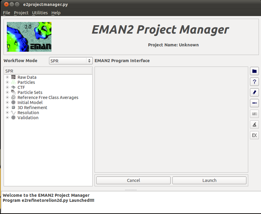 The first thing to do after you've run an EMAN2 reconstruction is to open up the Project Manager:
