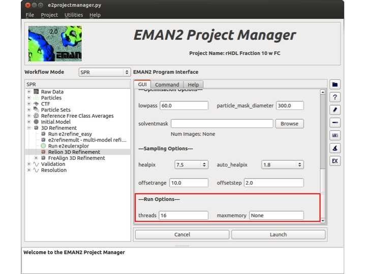 There are only two options in this section. The first is the number of threads that you wish Relion to use. The second is the maximum amount of memory (maxmemory) that each thread will use when it is initiated.