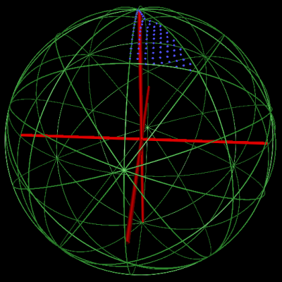 In single particle reconstruction we must project over this asymmetric unit as accurately as possible. To do this we often think in terms of the unit sphere and imagine it as encapsulating the symmetric object. We isolate a single asymmetric unit and define the surface of the unit sphere we must uniformly project through to ensure the sampling of the single asymmetric unit in all of its unique orientations.