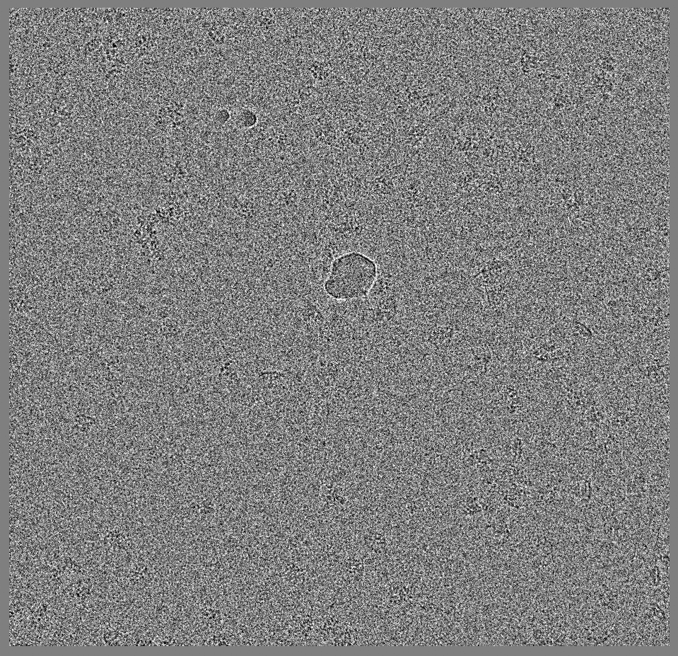 The first image is a filtered version of the input, and the second image is the output of the neural net. The particles should be highlighted in the second image. Note in this case some large ice contaminations are recognized as particles in this case but it generally looks fine.