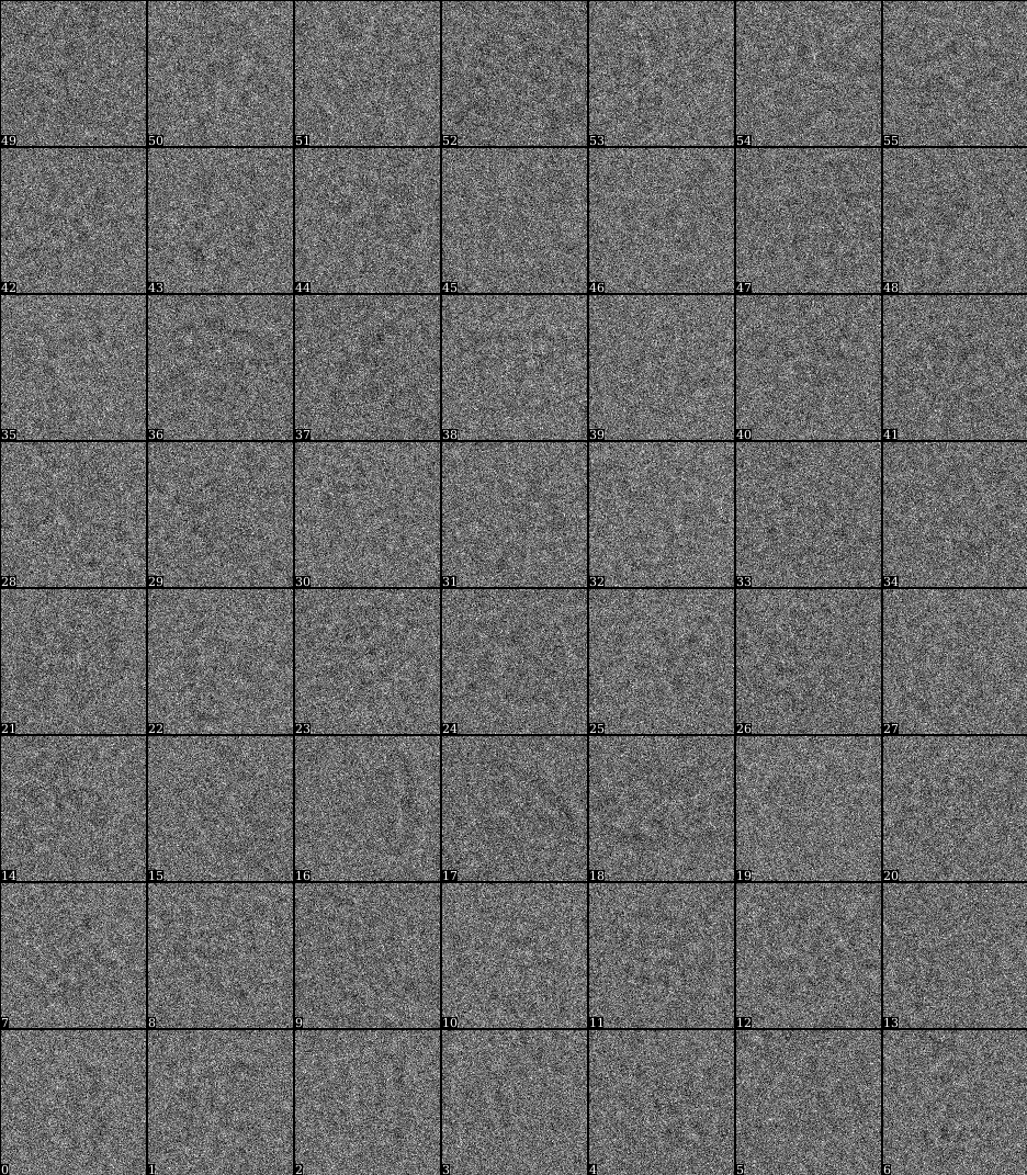 In stack display, toggle on the value called “label”. Resize the view so that there are 3*N images in each row. Here for each 3 images, the first one is one particle or noise sample, the second one is the output from the first layer of the neural net, and the third one is the final output of the classification layer of the neural net. Real particles have the label value of 1, while negative samples have label 0.