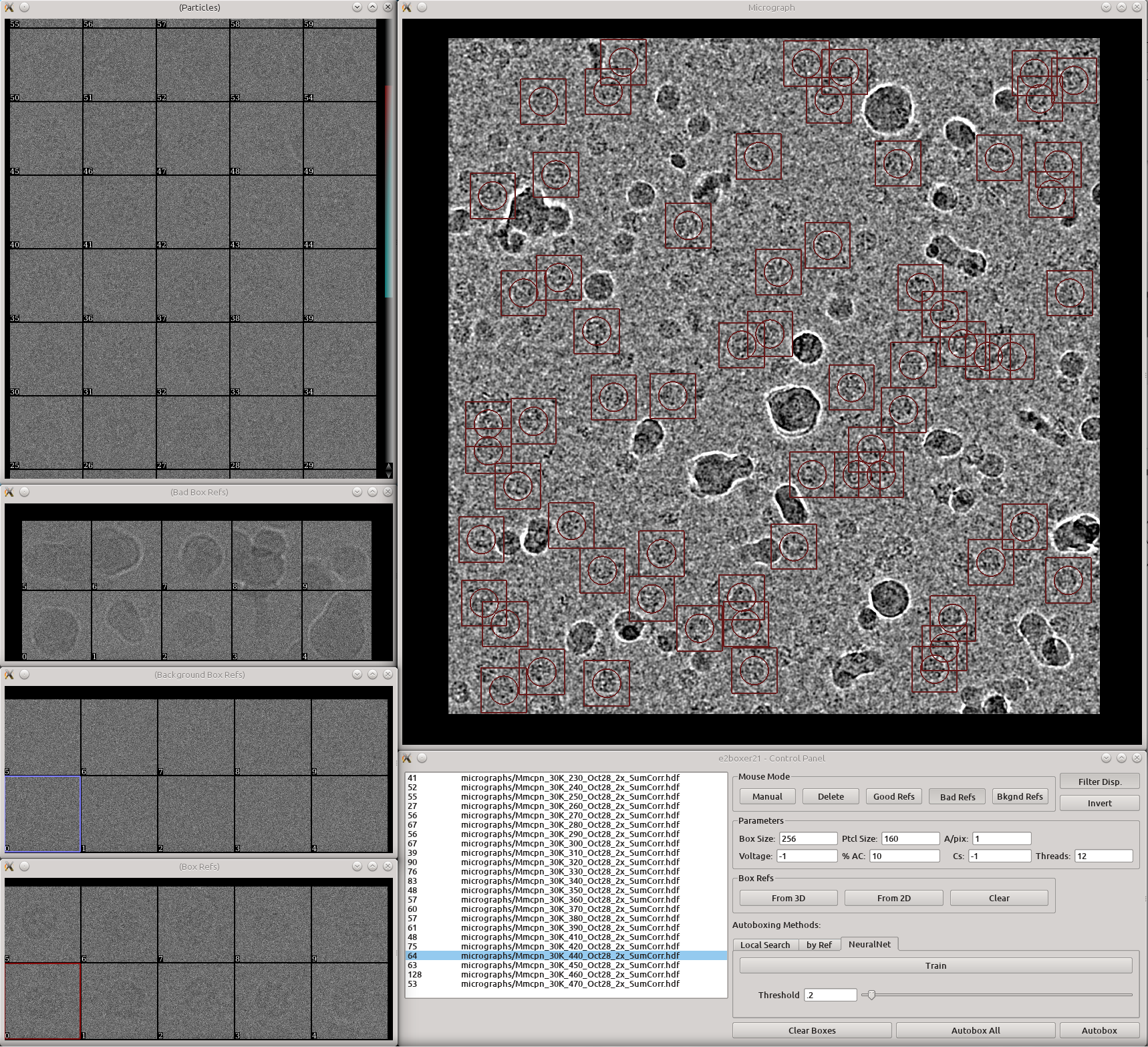 - Now we train two networks, one for boxing particles from micrographs, another for excluding obvious bad particles (ice etc).