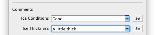 To describe the ice conditions and thickness in a particular grid, two special fields are provided in the comments area. Enter or select a value, and click “set” to save the value.